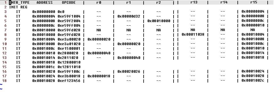 The CPU models used in the virtual prototypes, provides option to dump CPU instruction traces when an embedded code is run on the VP. This advanced instruction tracing provides information about the instruction type, address and opcode of the instruction along with updated register values.